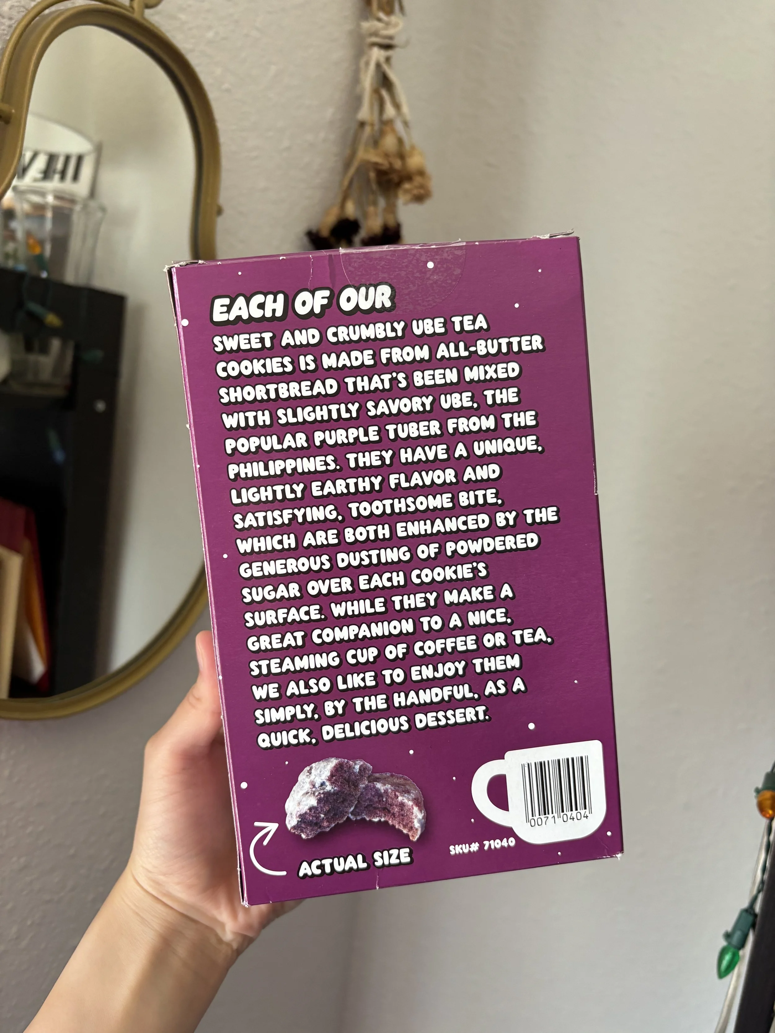 Another one of my Trader Joe’s staples— these tea cookies are so good! They have a subtly sweet and slightly nutty flavor, and pair well with a cup of tea or matcha. Also, as a purple person (could you tell what my favorite color is?), I love that they’re the color purple!
