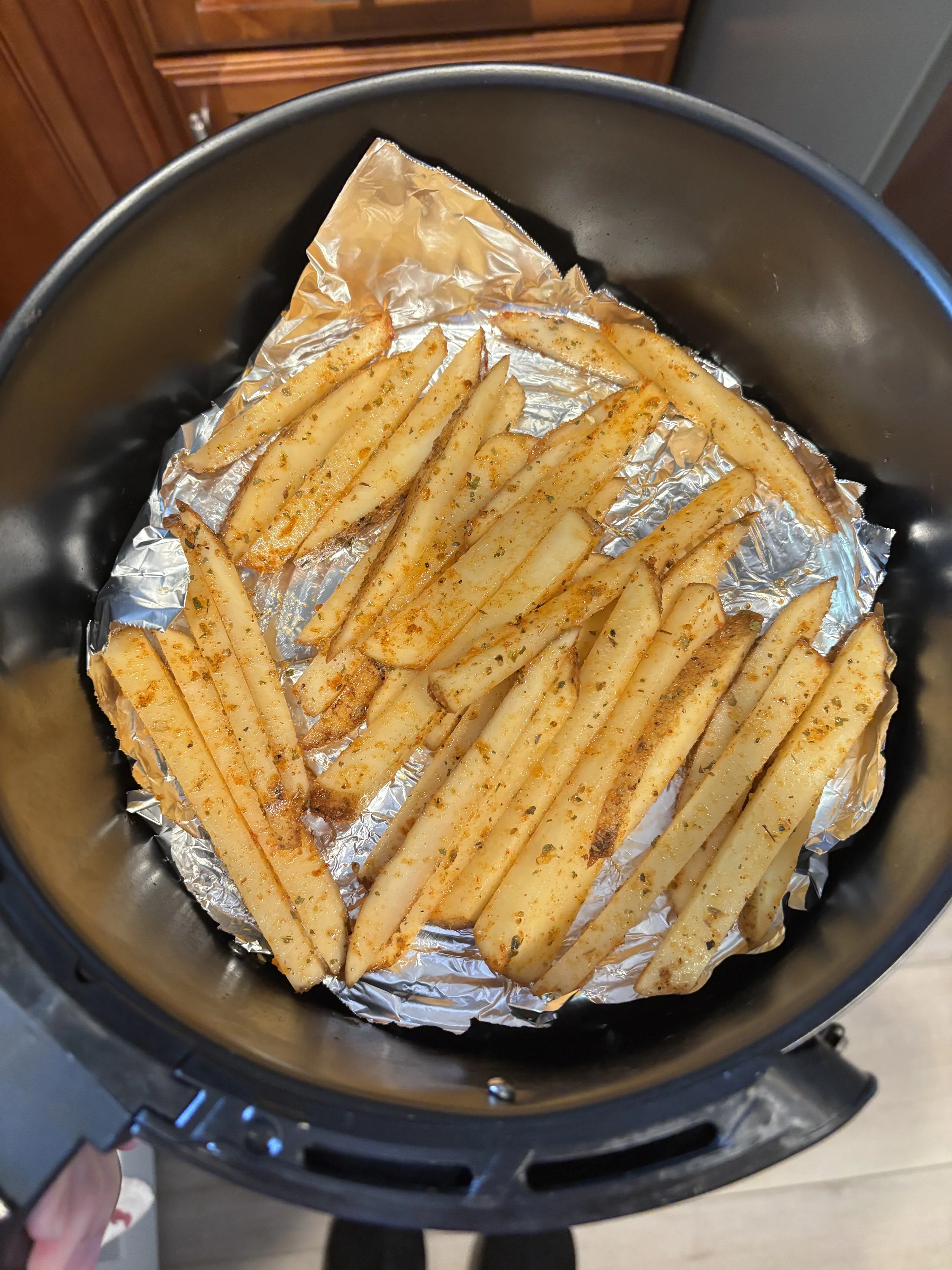 Before air frying my fries.