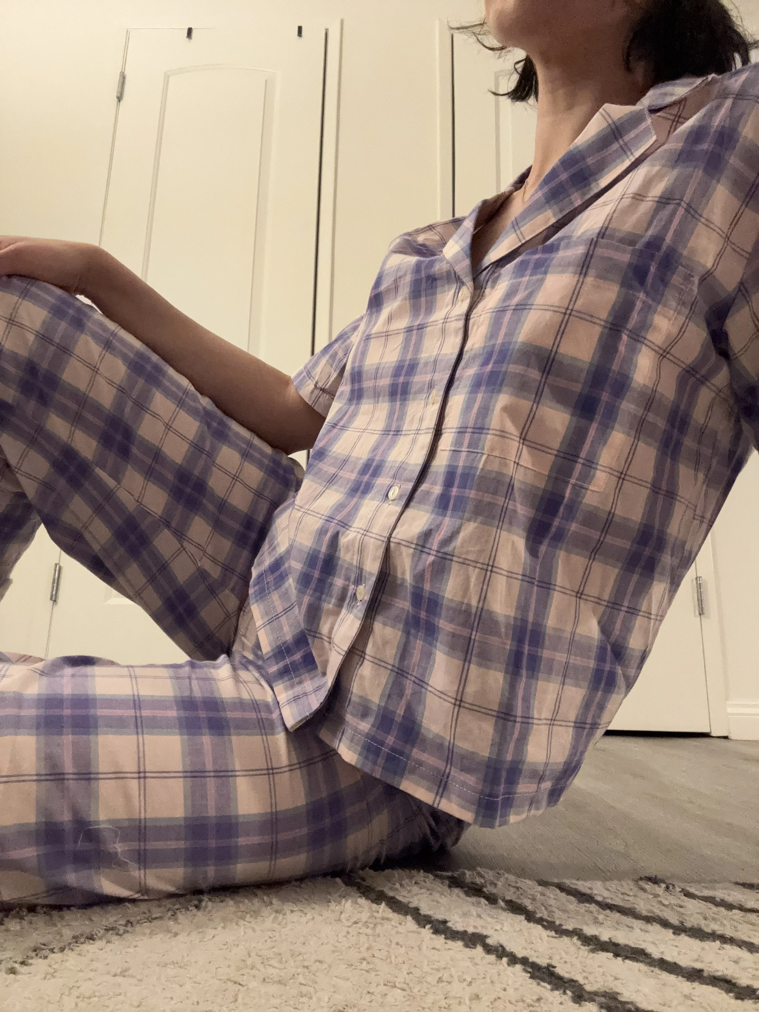 I wanted to refresh my nighttime pajamas, and after a quick search online, I came across this purple plaid pajama set! I love that they’re 100% cotton and super comfortable. They were also listed at an affordable price (thank you, Gap Factory!!). I sized up when ordering to ensure that they’d fit looser, for a more comfortable night’s sleep each night.